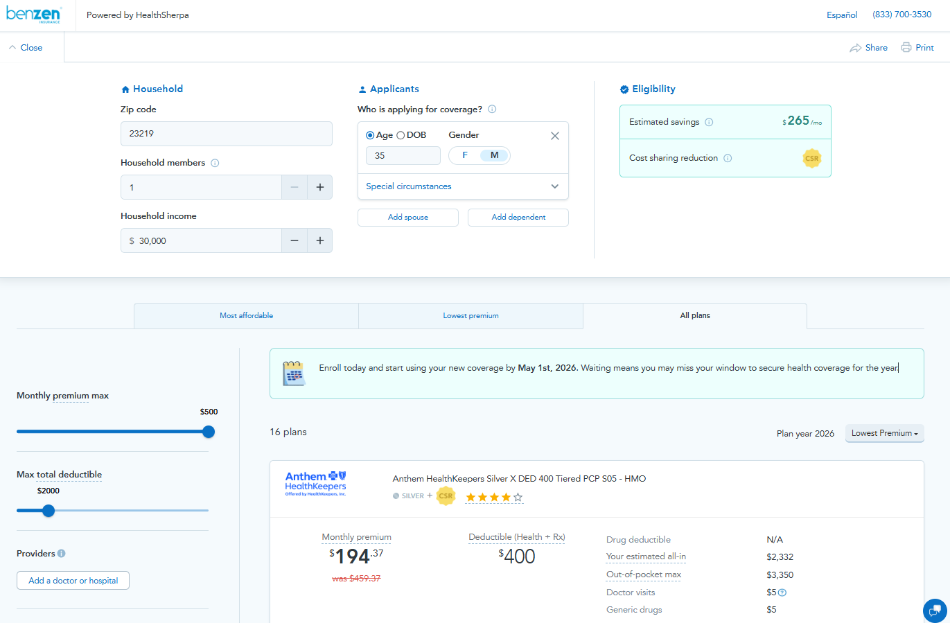We utilize HealthSherpa technology for the fastest, most secure transaction with no markups or extra fees!